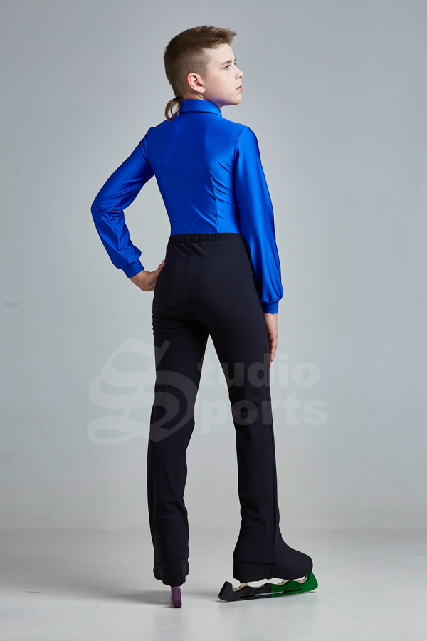 Яркая рубашка-боди для мальчика – элемент классического костюма для фигурного катания. Максимально простой крой с отложным воротником и длинными рукавами с манжетами смотрится очень элегантно.