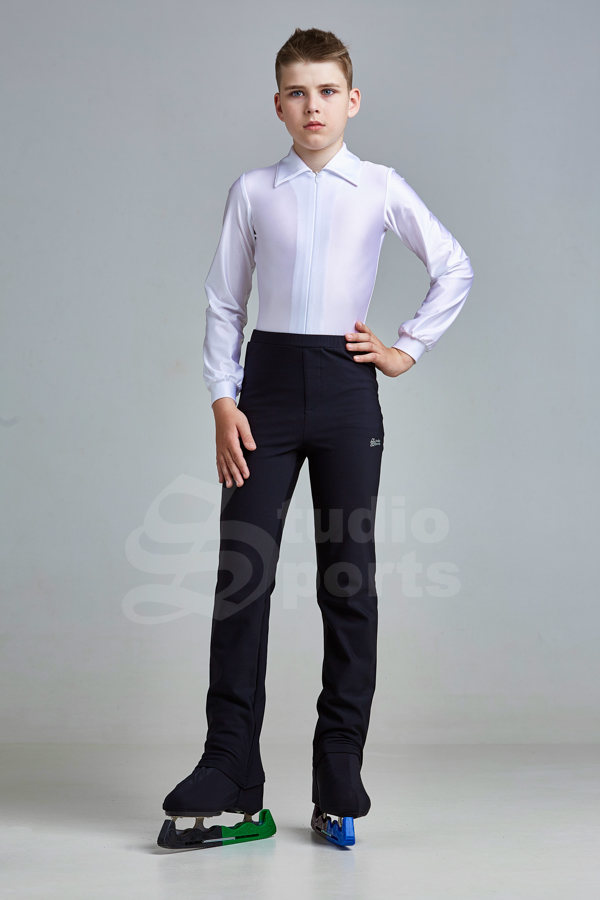 Яркая рубашка-боди для мальчика – элемент классического костюма для фигурного катания. Максимально простой крой с отложным воротником и длинными рукавами с манжетами смотрится очень элегантно.