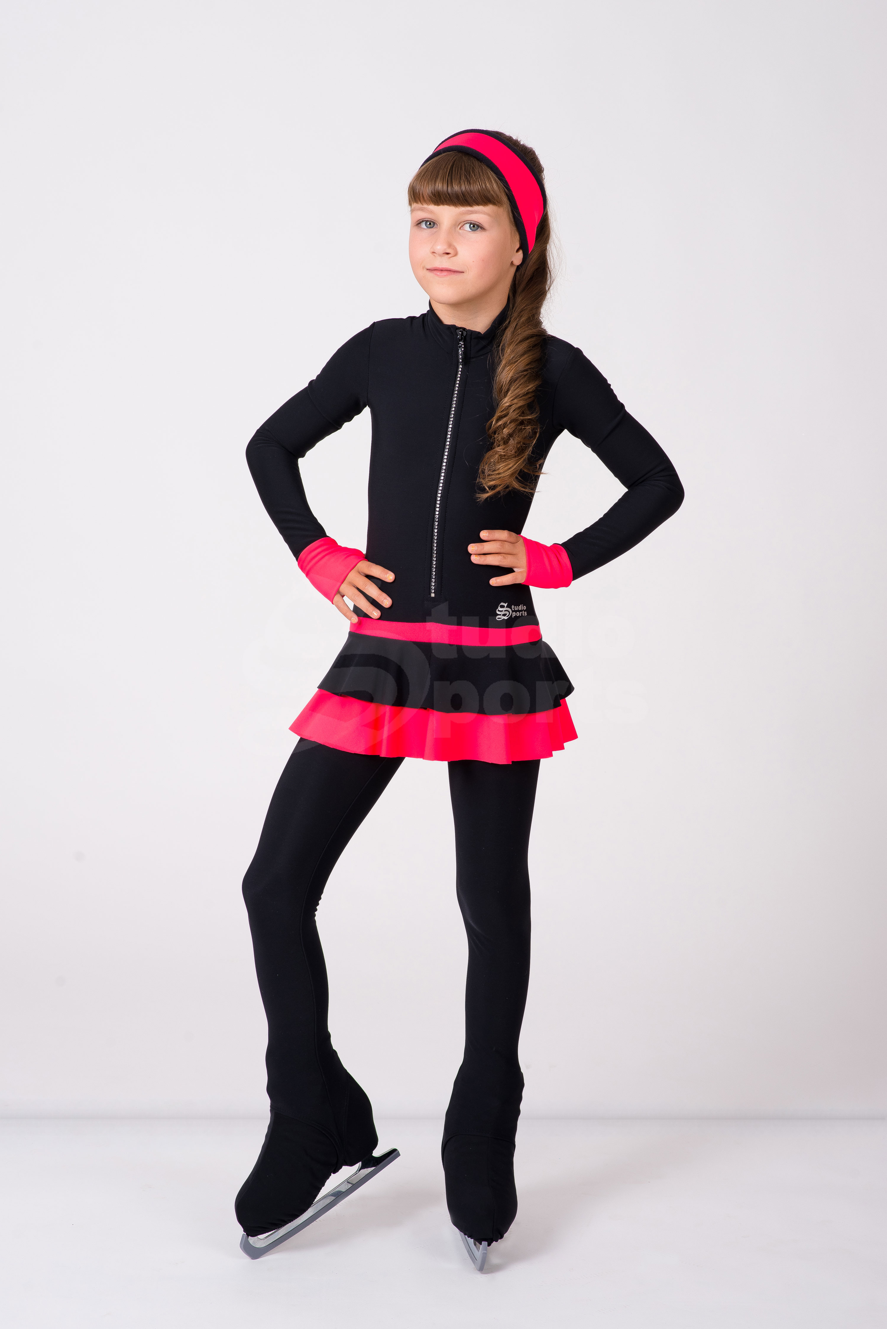 Чёрные термо лосины и повязка на голову делают образ законченным и удобным для тренировок. Возможное разнообразие цветовых решений, поможет подчеркнуть индивидуальность юной фигуристки.